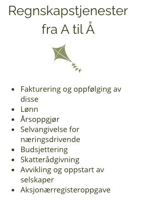 Vi leverer alle lovpålagte innleveringer i tide, så som skatt, arbeidsgiveravgift, MVA og årsoppgjør.